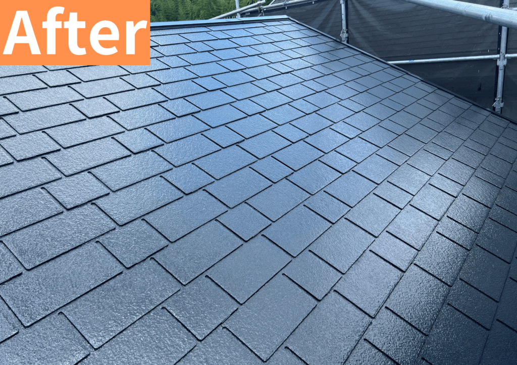 塗装前と後では、屋根の美しさや輝きがこんなに違って見えます。