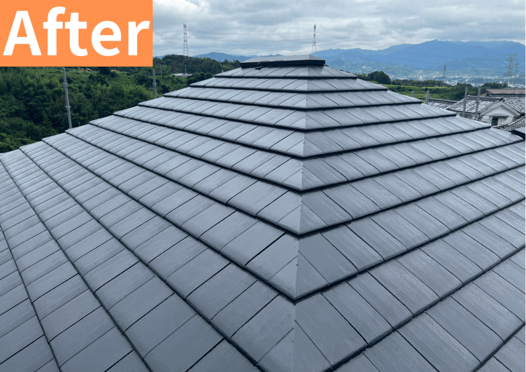 まるで新しい屋根に張り替えたかのような仕上がりで、お住まい全体がぐっと引き締まって見えますね。
