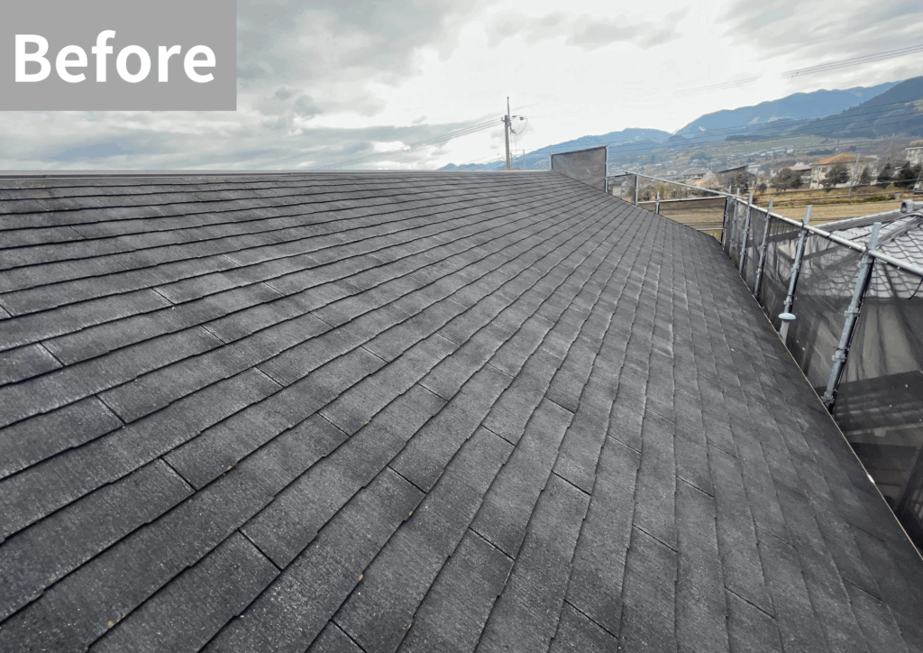 ここから苔や汚れ、劣化した塗膜などしっかり落とし、すっきりときれいな状態にしていきます。