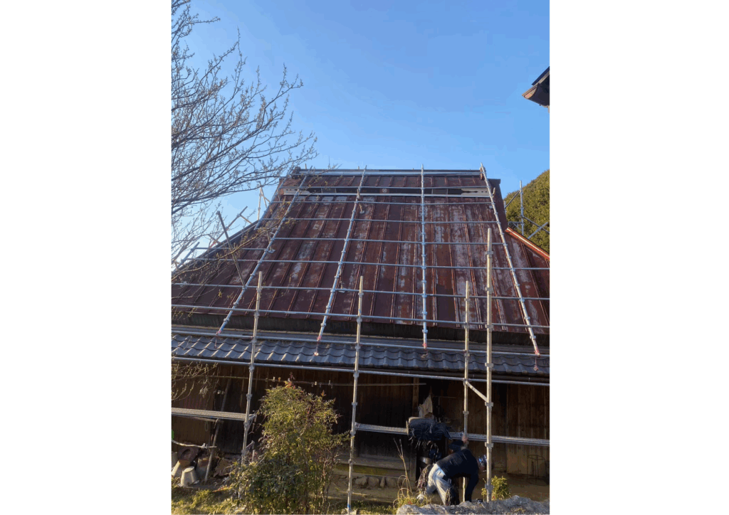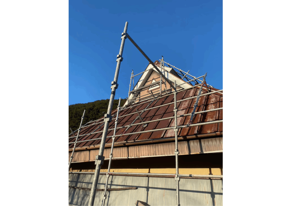 安全に作業を行うため、しっかりと足場を組んでいます。