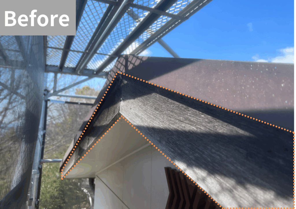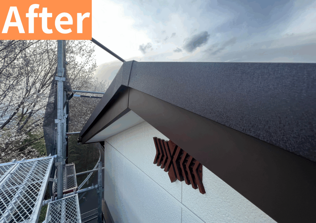 破風板も長年の劣化で傷んでいたため、しっかりと補修・塗装を行い、きれいに仕上げました。