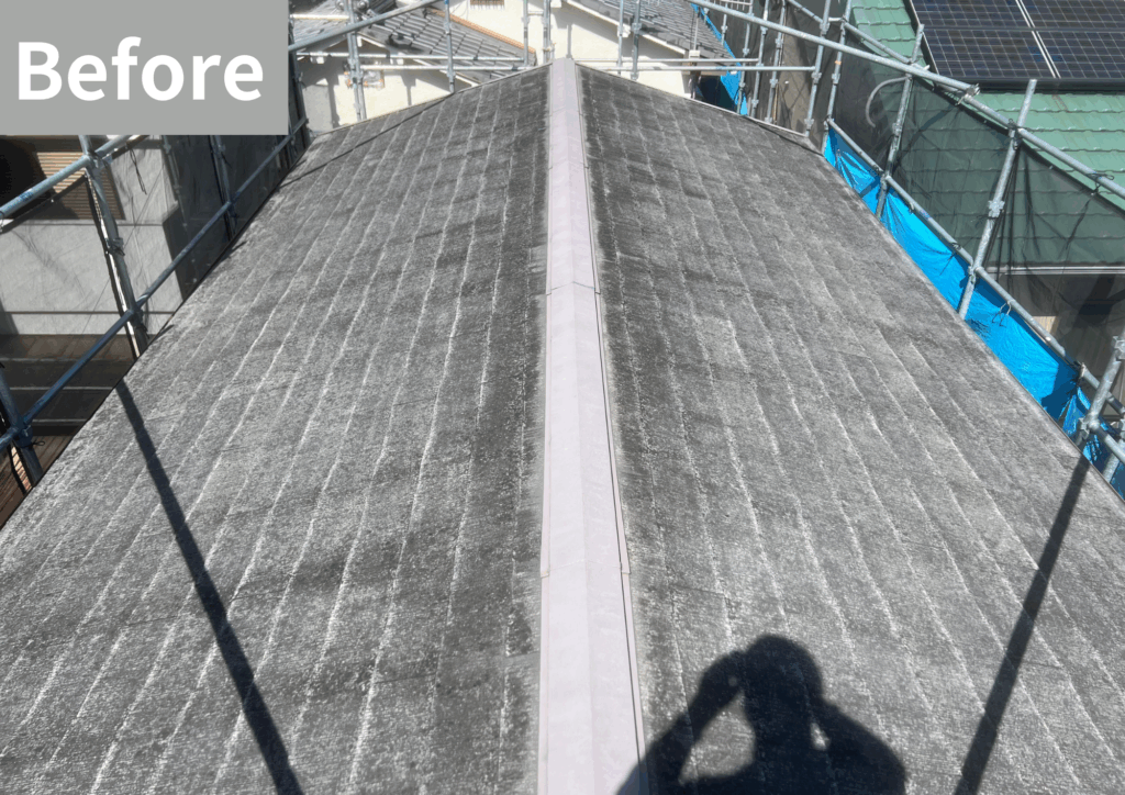 塗装前には高圧洗浄を行い、長年付着していた苔や汚れ、古くなった塗膜を丁寧に洗い流していきます。