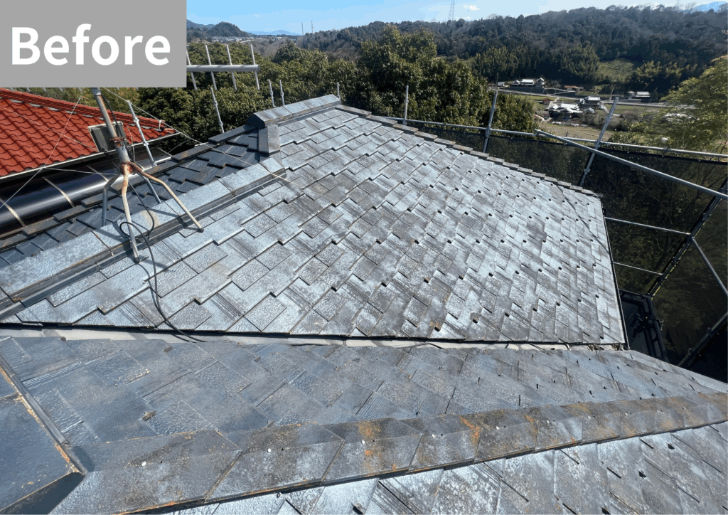 屋根部分も、見えている範囲だけでも劣化が進んでいるのが確認できます。