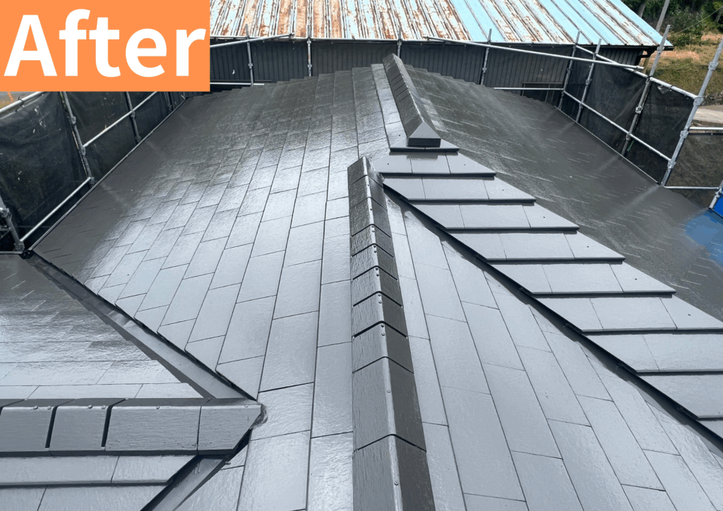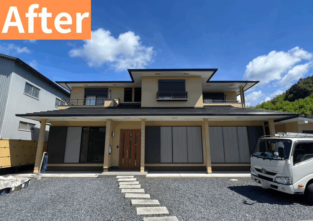 外壁・屋根ともに美しさと機能性がしっかりよみがえり、新築のような印象です。