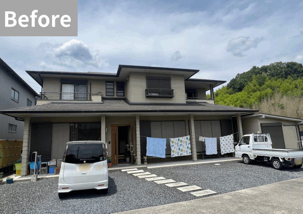 大きなひび割れは見られませんが、長年の紫外線や雨風の影響で屋根や外壁の色あせ・劣化が目立ってきています。
