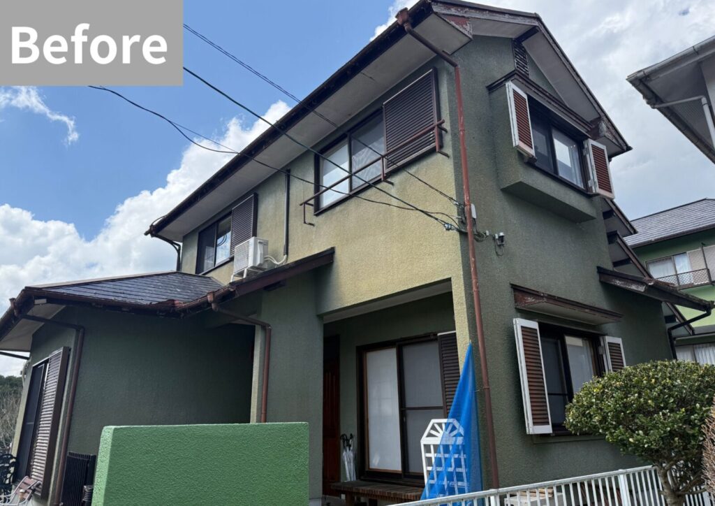 長年の雨風や紫外線の影響により、全体的に色あせや塗膜の剥がれが見られますね。