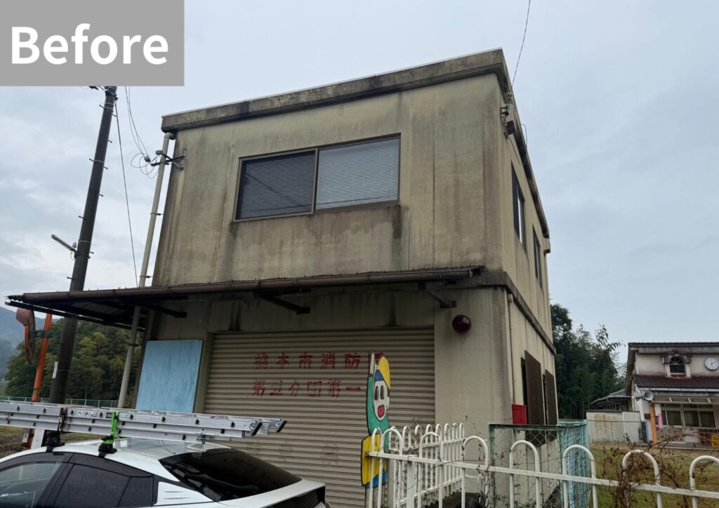 長年の影響により、全体に色あせや雨だれなどの汚れが見られる状態でした。