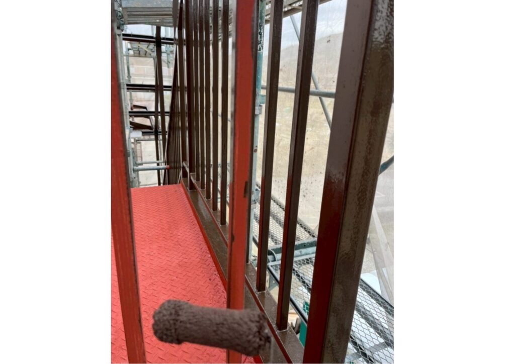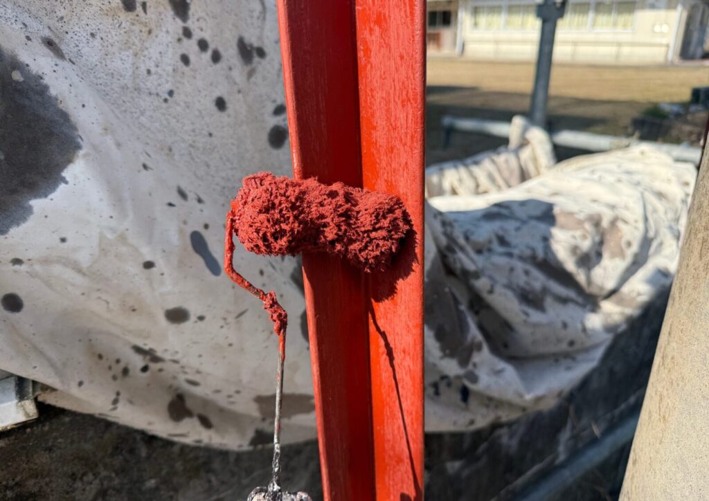 錆止め塗料をしっかりと塗布した後、その上から仕上げ用の塗料を重ねていきます。